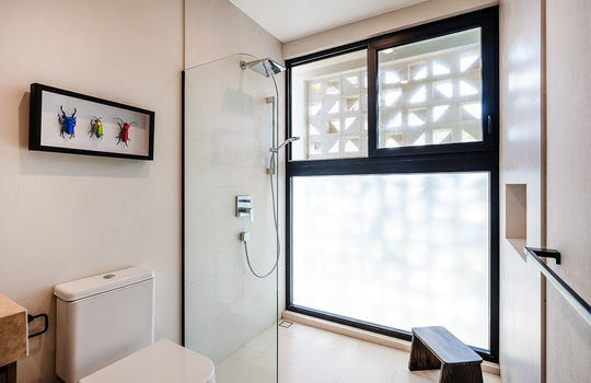 The design of this home prioritizes natural light and ventilation, featuring crossed ventilation systems and breeze blocks that keep the space cool and airy without constant reliance on artificial cooling. German windows and insulated roofing further enhance the home's energy efficiency, ensuring a comfortable indoor climate year-round.